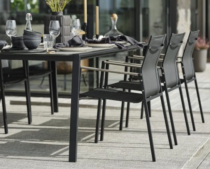 Minimalistyczna forma czarnych krzeseł Lyra pozwala stworzyć wyjątkowe aranżacje w przestrzeni, którą zaplanowaliśmy do wspólnego wypoczynku. Nowoczesny zestaw mebli ogrodowych podkreśli taras urządzony w stylu loftowym lub skandynawskim. Bardzo dużą zaletą jest łatwe przechowywanie wszystkich krzeseł Lyra ze względu na możliwość ich sztaplowania. Ponadto wystarczy je czyścić przy użyciu miękkiej bawełnianej szmatki, aby po chwili meble wyglądały znowu jak nowe.