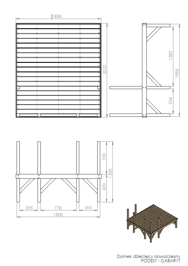 - wymiary zewnętrzne: z podestem 1838 x 2022 mm
