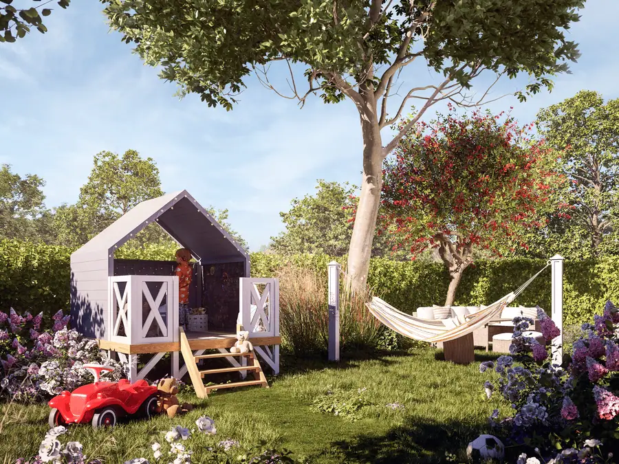 Domek Floks to nie tylko wyjątkowe miejsce do zabawy dla dziecka, ale także ozdoba ogrodu. Wykończenie domku można pozostawić swojej wyobraźni i dopasować go kolorami np. do elewacji domu, wybrać malowanie w kolorystyce proponowanej przez nas lub pomalować w kolorach tęczy.
