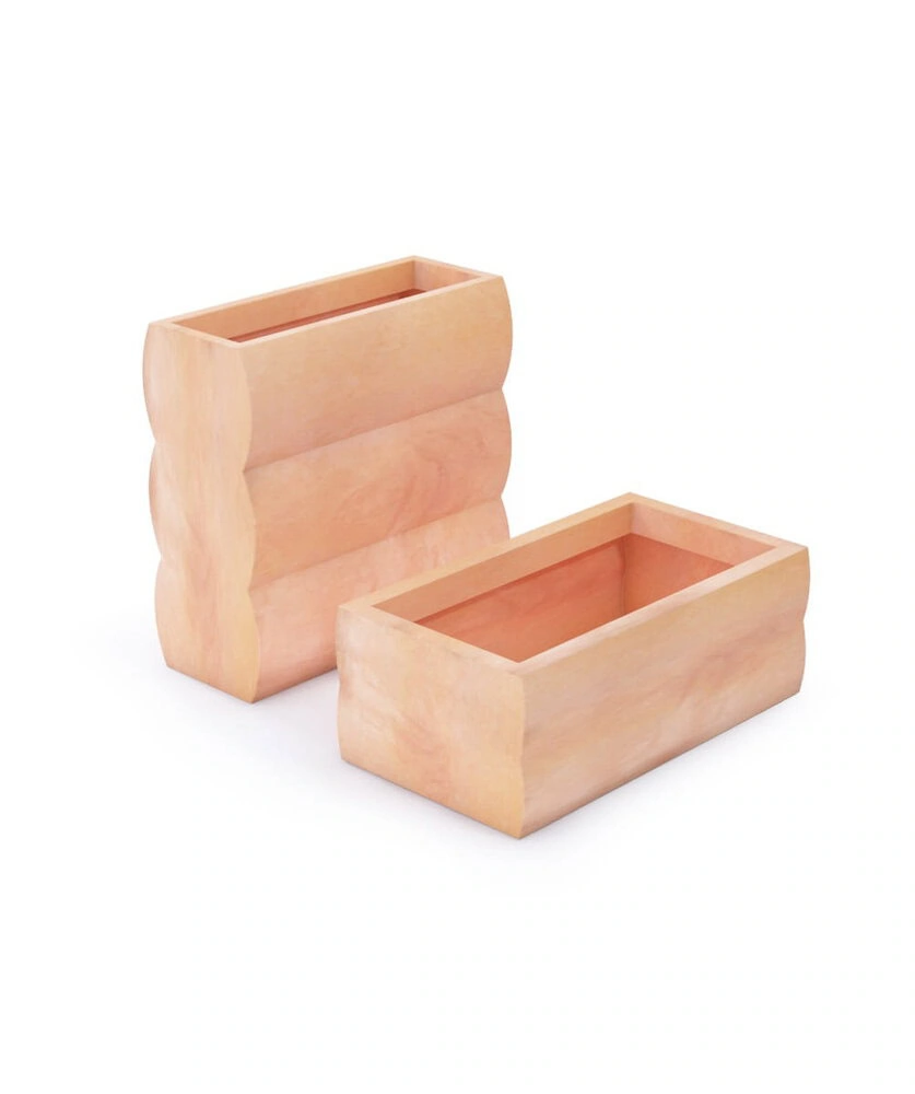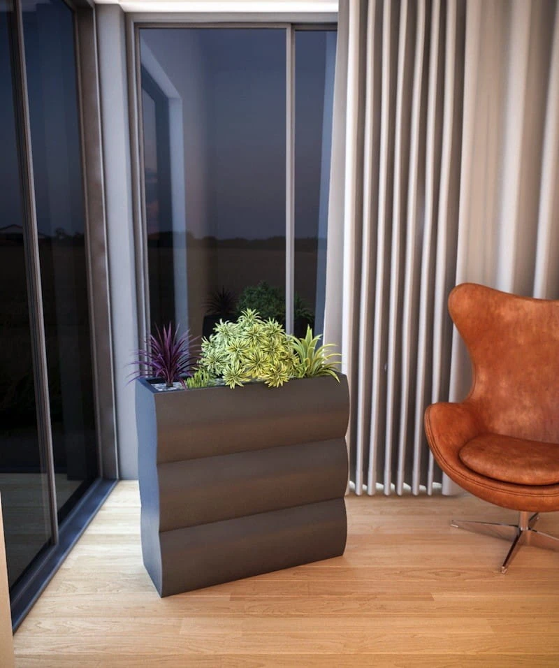 Donica wypukła Nyx stanowi nowoczesny i niezwykle interesujący pojemnik na roślinę. W zależności od rozmiaru, składa się z dwóch lub trzech poprzecznych wybrzuszeń, znajdujących się po obu stronach donicy. Sprawia to wrażenie trójwymiarowości, przez co urozmaica to całą bryłę. W całej swojej okazałości przyciąga wzrok i prezentuje się bardzo efektownie.