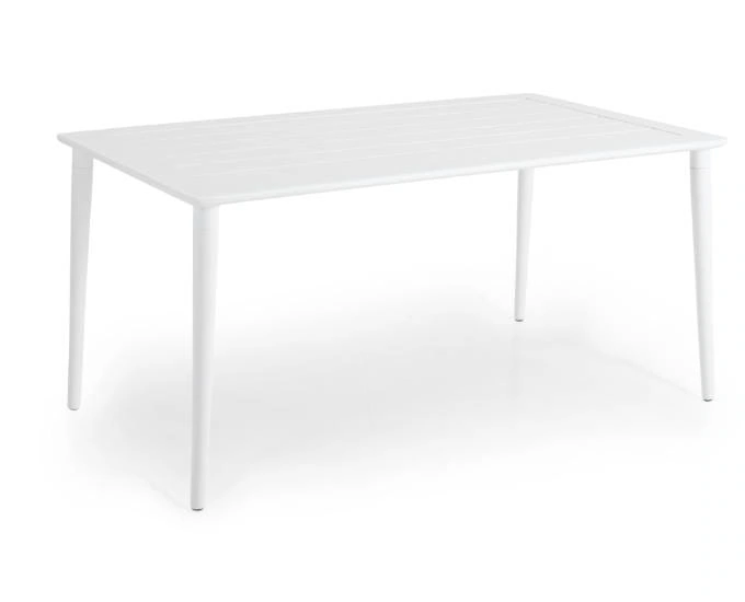 Stół obiadowy Delia wykonany został z trwałego aluminium. Metal ten nie ulega korozji i jest w pełni odporny na niekorzystne warunki atmosferyczne. Nie deformuje się pod wpływem ciężaru oraz eksploatacji w warunkach zewnętrznych. Dlatego też jest bardzo często wykorzystywany do produkcji wyposażenia ogrodowego i nie tylko. Aluminium dodatkowo nie potrzebuje impregnacji i jest łatwy w utrzymaniu w czystości. W związku z tym rozlany napój, czy resztki jedzenia na blacie, będą łatwe do usunięcia.