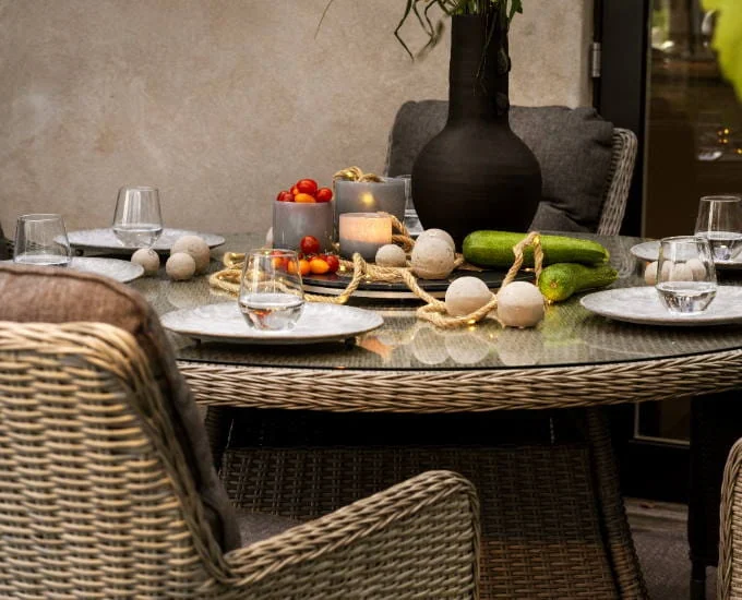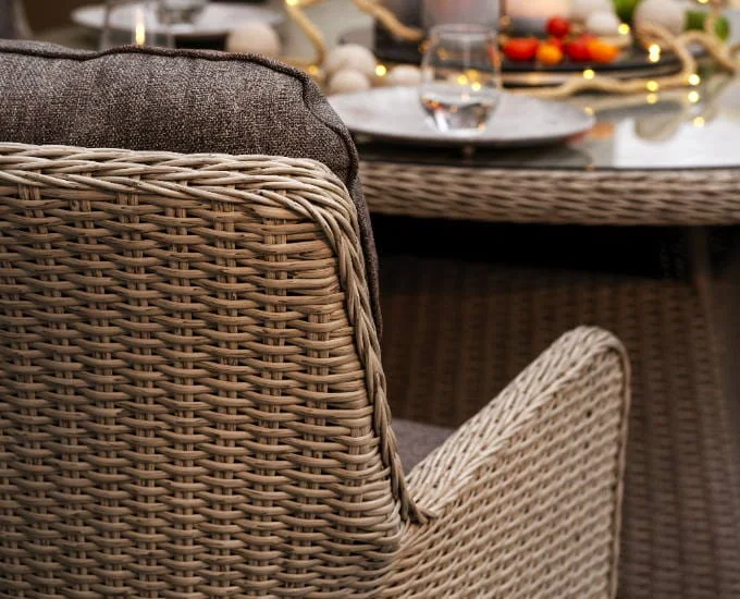 Stół jadalniany Hornbrook wykonany został z wysokiej jakości materiałów, dzięki którym sprawdza się bez zarzutu przez wiele sezonów wiosenno-letnich. Stelaż opleciony został trwałym technorattanem. Jest to tworzywo sztuczne o wysokiej tolerancji na promieniowanie słoneczne, wahania temperatury oraz deszcz. Dlatego też producenci bardzo często wykorzystują go do produkcji architektury ogrodowej i nie tylko. Plecionka swoją strukturą przypomina naturalny rattan, natomiast jest od niego o wiele trwalsza. Dostępna jest w dwóch kolorach do wyboru.