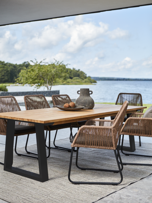 Metalowy stół Laurion z teakowym blatem pozwala na eksperymentowanie z dodatkami, gdyż doskonale będzie prezentował się z krzesłami z technorattanu, jak również z innych tworzyw. Dzięki temu, wraz ze stołem Laurion można stworzyć zestaw dostosowany do indywidualnych potrzeb użytkownika i zmieniających się upodobań.