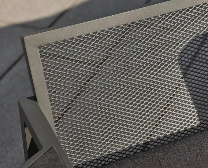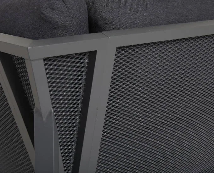 Moduł pojedynczy Skalfort pozwala dostosować tarasową przestrzeń do własnych potrzeb i upodobań. Stanowi harmonijne uzupełnienie narożnika Skalfort. Prezentowany moduł nie jest meblem wolnostojącym, lecz praktycznym rozwiązaniem, dzięki któremu można powiększyć narożnik z prawej bądź lewej strony o dowolną liczbę miejsc. Podobnie jak cała kolekcja Skalfort, wyposażony jest on w wygodne siedzisko i oparcie wypełnione grubymi, miękkimi poduchami, które gwarantują wyjątkowy komfort wypoczynku. Wyprofilowane oparcie wykończone jest stylową metalową siateczką, która wprowadza industrialną nutę estetyczną do tej kompozycji. Całość osadzona jest na dwóch solidnych nóżkach, które nadadzą stabilności konstrukcji narożnika. Zarówno poduszki, jak i malowany proszkowo aluminiowy stelaż zachowane zostały w eleganckiej, grafitowej kolorystyce. Moduł środkowy Skalfort świetnie sprawdzi się podczas większych spotkań rodzinnych lub towarzyskich, dostarczając dodatkowej, komfortowej przestrzeni do siedzenia.