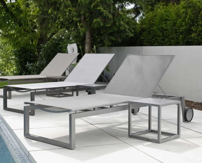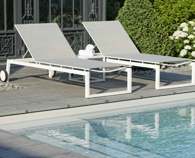 Nowoczesny leżak na kółkach Robin prezentuje się bardzo loftowo oraz okazale. Został wykonany z postępowych materiałów, odpornych na niekorzystne czynniki atmosferyczne. Wypełnia go plecionka tekstylna, która gwarantuje komfortowy spoczynek nad basenem, czy w ogrodzie.