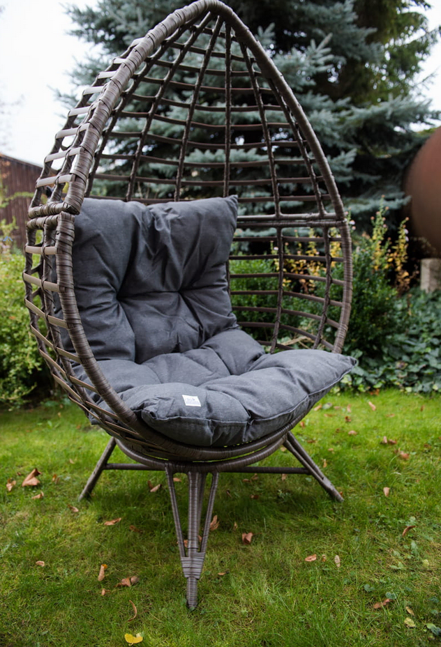 Ogrodowy fotel kokon stojący Fresco posiada niebanalny kształt. Okrągłe siedzisko podtrzymuje stalowa podstawa na nóżkach. Dzięki niej cały mebel jest niezwykle trwały i stabilny podczas użytkowania. Charakterystyczne siedzisko zostało wyplecione z technorattanu o szczotkowanej strukturze. Jest to materiał wykazujący się wysoką odpornością na niekorzystne czynniki atmosferyczne, jak i uszkodzenia mechaniczne. Doskonale znosi wpływ wilgoci, promieniowania UV oraz wahania temperatury. Ponadto jest niepodatny na odkształcenia i deformacje, przez co jest często wykorzystywany do produkcji mebli ogrodowych i nie tylko. Ponadto technorattan nie wymaga impregnacji i pielęgnacji, a mimo to zachowuje nienaganny wygląd przez długi czas.
