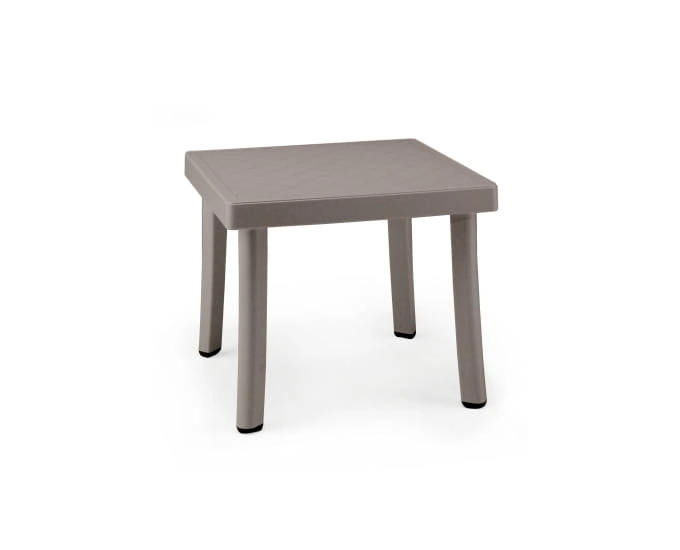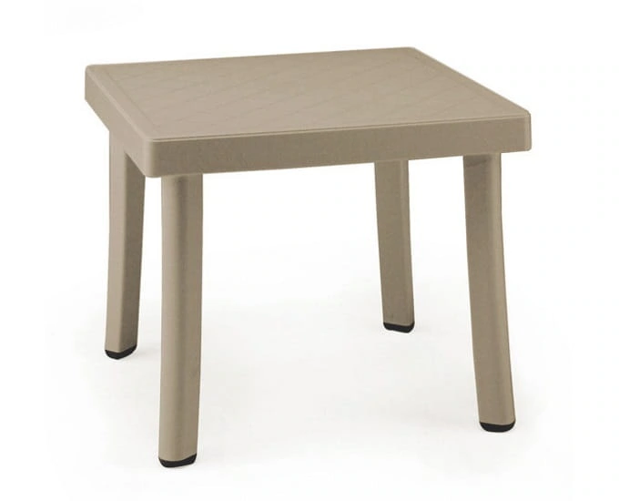 Ogrodowy stoliczek Rodi posiada kwadratowy kształt blatu, który podtrzymują cztery nogi. W całości prezentuje się bardzo solidnie i stylowo. Jego niewielka waga oraz gabaryt sprawiają, że można go ustawić w dowolnym miejscu, wedle własnych potrzeb i preferencji. Do wyboru jest w kilku wariantach kolorystycznych przez co z łatwością wkomponuje się w wiele zewnętrznych aranżacji.