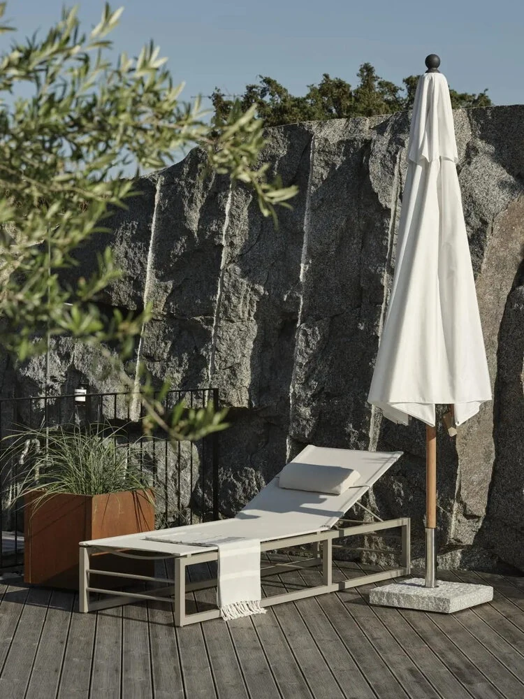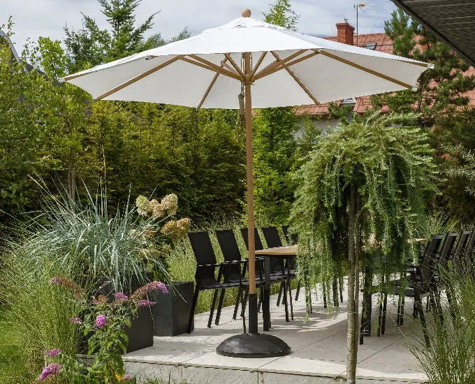 Parasol Paliano nie posiada podstawy. Możesz wybrać podstawę w naszym sklepie wśród wielu różnych do wyboru.