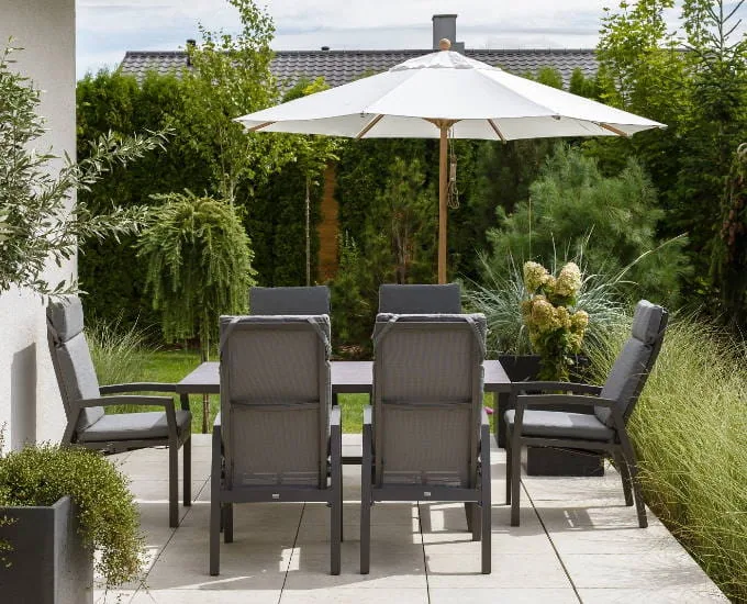 Parasol ogrodowy Paliano jest praktycznym rozwiązaniem do stworzenia zacienionego zakątka tam, gdzie jest on potrzebny, a więc w pobliżu stołu, leżaka czy sofy. Parasol osłoni przed słońcem i zmieści się nawet na niedużej przestrzeni. Średnica jego czaszy wynosi 3 metry lub 3, 5 metra i wystarcza na większy balkon czy strefę wypoczynkową dla kilku osób. Parasol o tej średnicy świetnie sprawdzi się wstawiony w blat stołu czy postawiony przy niedużym dmuchanym basenie.