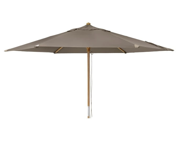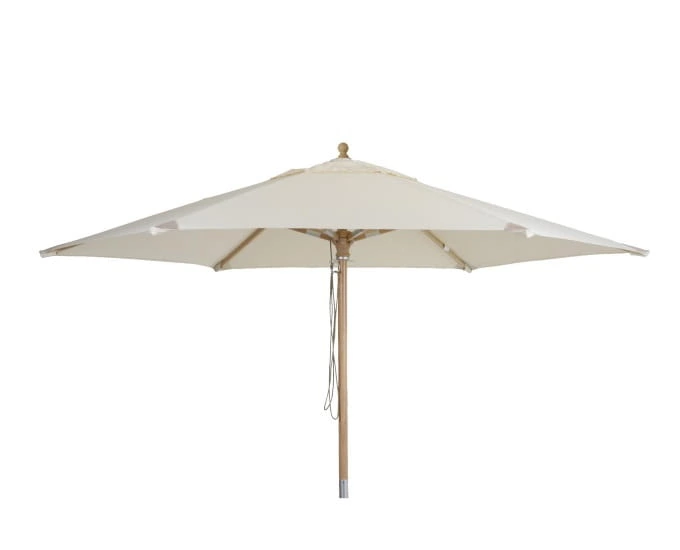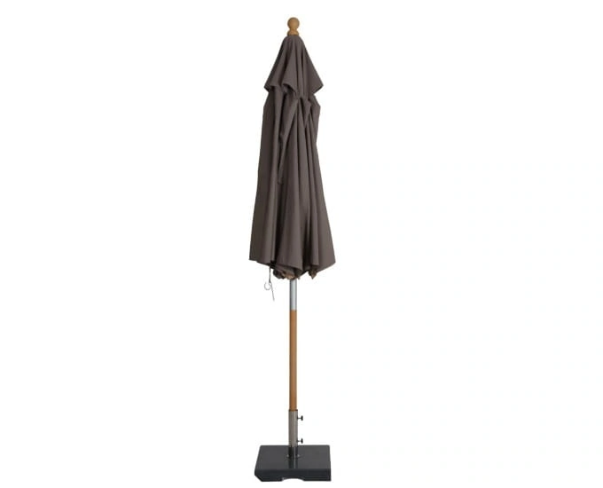 Parasol Reggio dostępny jest w kilku popularnych kolorach do wyboru, dzięki czemu łatwo dopasować go do otoczenia. Góra parasola jest zakończona ozdobnym, okrągłym elementem. Dzięki dopracowaniu wszystkich detali w parasolu, całość prezentuje się bardzo estetycznie.