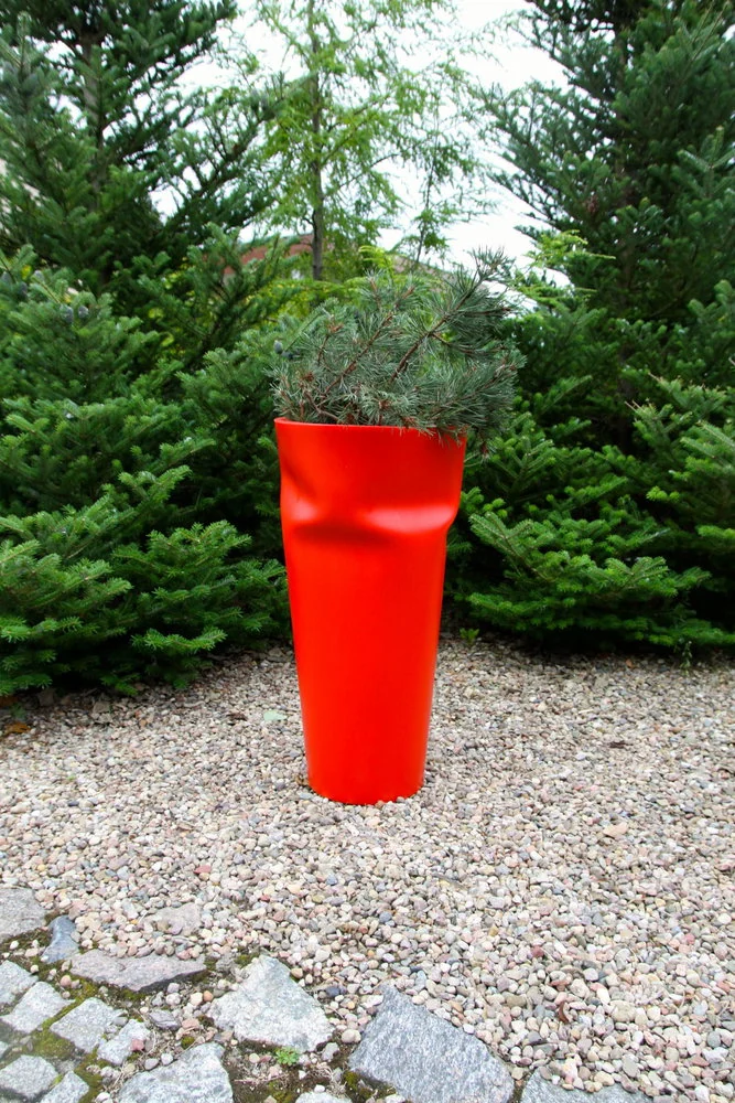 Pogięta donica Bent, to pojemnik na roślinę ozdobną o niezwykłym, niestandardowym kształcie. Jej sylwetka przypomina wąski stożek, rozszerzający się ku górze - dodatkowo ozdabia ją element zgniecenia, który dekoruje całą bryłę, dodając jej charakteru. Jest stosunkowo wysoka i doskonale eksponuje bardziej rozłożyste rośliny ozdobne, a szeroka gama kolorystyczna, stanie się dla nich doskonałym tłem.