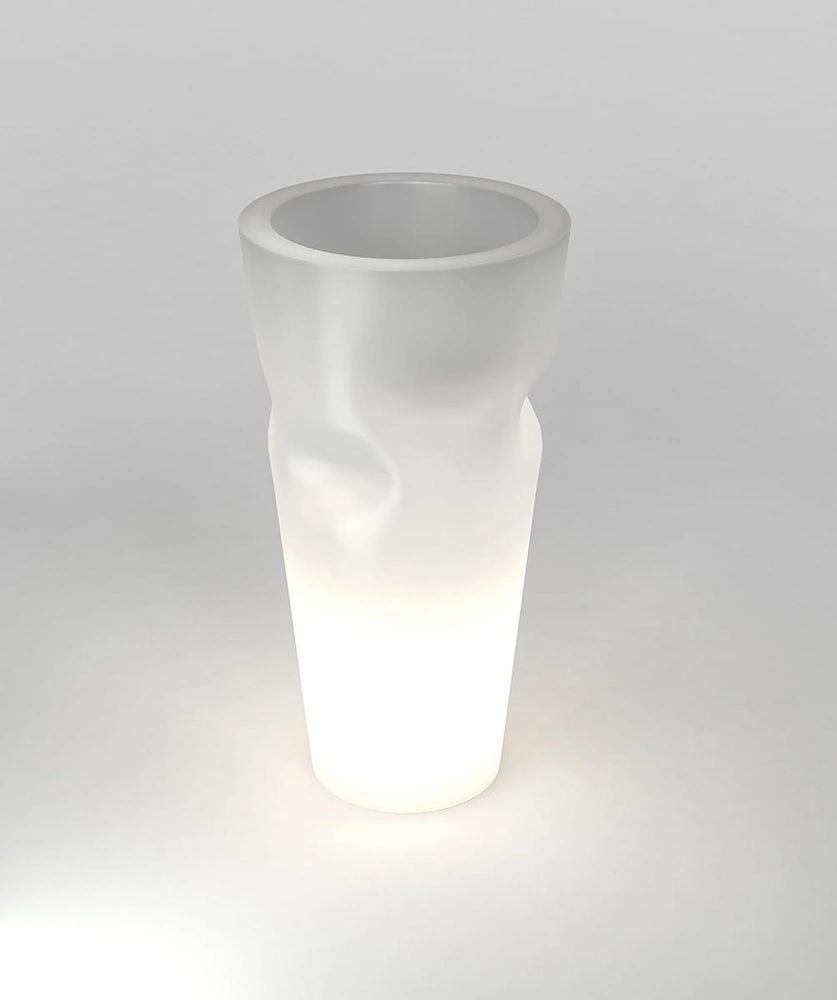 Pogięta donica Bent, to odważna propozycja, którą dodatkowo można podkreślić oświetleniem LED lub RGB w kilkunastu, zmiennych barwach. Przez to, stanie się dodatkowym punktem świetlnym, który tworząc efektowne iluminacje, wprowadzi nastrojowy klimat.