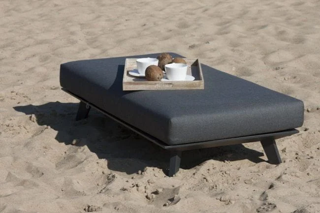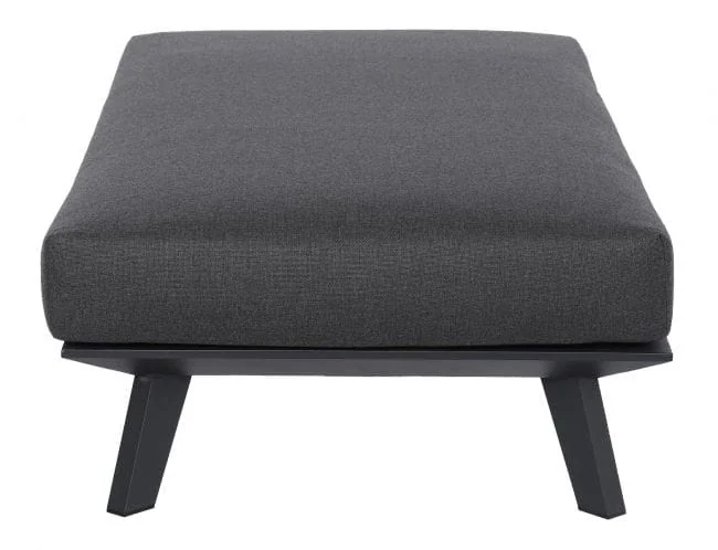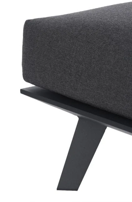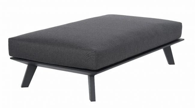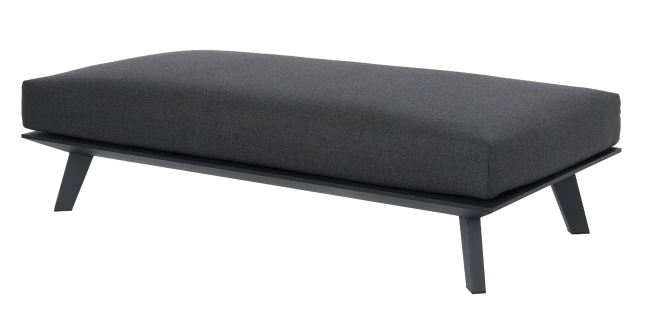Prostokątny podnóżek - stolik Bart pokrywa duża, puszysta poduszka. Została ona uszyta w staranny sposób, z dbałością o najmniejsze detale. Pokrywa ją postępowa tkanina dralon, o podwyższonej odporności na wilgoć, promieniowanie UV oraz odkształcanie. Dlatego też zachowuje swój kształt na długie lata, a utrzymanie jej w czystości - także nie przysparza większych problemów. Podtrzymuje ją aluminiowa konstrukcja, w ciemnym kolorze i matowym wykończeniu. Metal ten nie koroduje i jest niepodatny na duży ucisk i uszkodzenia. W całości mebel prezentuje się bardzo stylowo i nowocześnie.