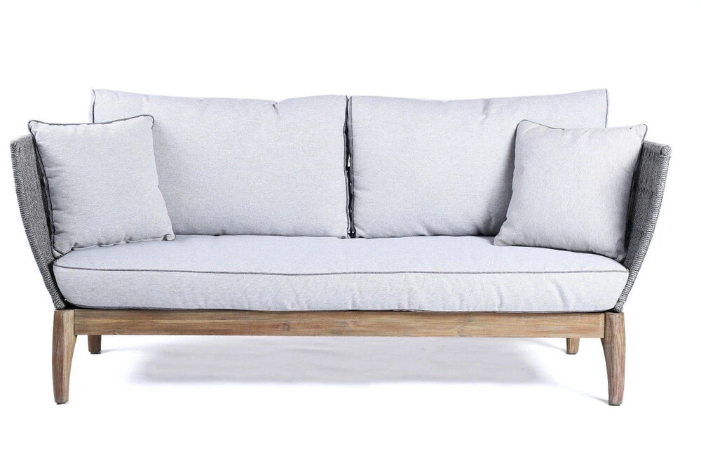 Sofa dla trzech osób została wykonana z trwałych materiałów, dostosowanych do warunków zewnętrznych. Cała konstrukcja utrzymuje się na czterech nogach, płynnie połączonych ze stelażem wykonanym z drewna akacjowego. Ten gatunek drewna cechuje się niezwykłą trwałością i odpornością na warunki atmosferyczne. Nie ulega również zniszczeniu w kontakcie z wilgocią oraz promieniowaniem słonecznym. Spośród wielu zalet tego surowca, należy także podkreślić - brak konieczności impregnacji. Dzięki czemu można korzystać z mebla przez wiele lat, bez wykonywania zabiegów pielęgnacyjnych. To sprawia, że korzystanie z sofy Parado to sama przyjemność.