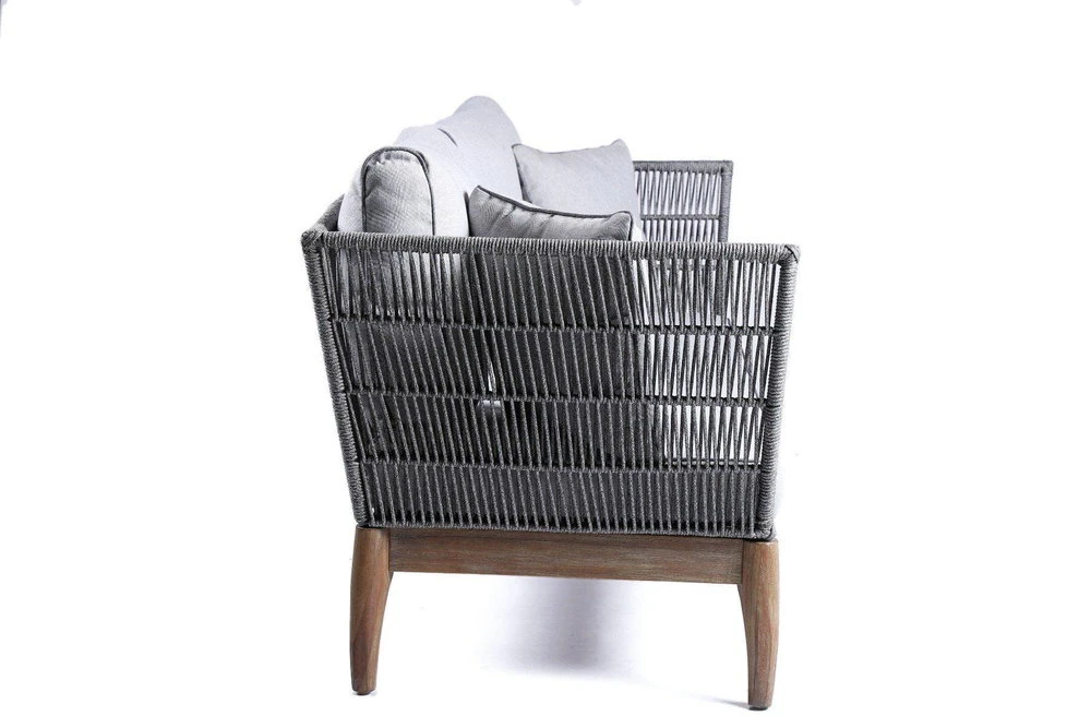 Sofa 3-osobowa ze sznurka Parado to bardzo elegancki i efektowny mebel. To propozycja inspirowana egzotyką, ponieważ posiada niestandardowe rozwiązania konstrukcyjne, wyróżniające go na tle innych modeli. Doskonale sprawdza się na tarasie, patio oraz w ogrodzie. Umożliwia stworzone strefy wypoczynkowej, dostosowanej do wyszukanego gustu gospodarzy, tym samym podkreślając ich charakter.