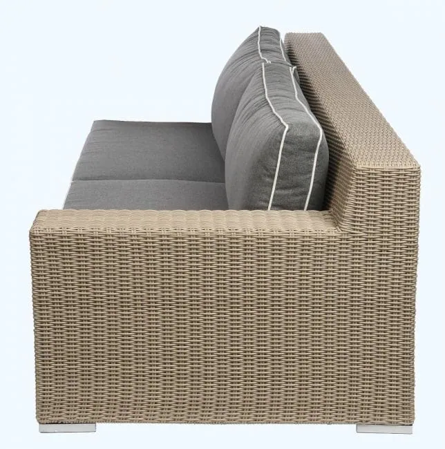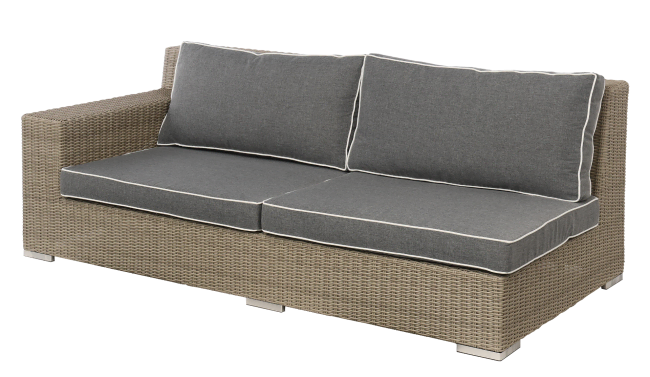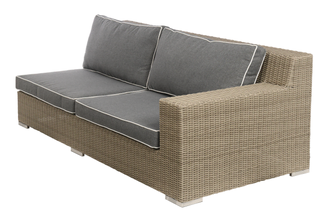 Sofa modułowa z technorattanu Cloud występuje w dwóch wersjach - prawej i lewej, co zdecydowanie ułatwia dostosowanie jej do indywidualnego zamysłu projektanta. Sofa została bardzo starannie wykonana, z wysokiej jakości materiałów, dlatego też zachowuje swój wygląd i właściwości na długi czas. Stanowi jeden z kilku elementów tworzących kompletny zestaw wypoczynkowy. Można oba te segmenty połączyć za pomocą modułu narożnego i stworzyć pełnowymiarowy narożnik ogrodowy.