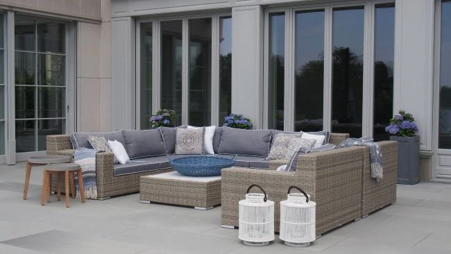 Sofa modułowa z technorattanu występuje w dwóch wariantach: