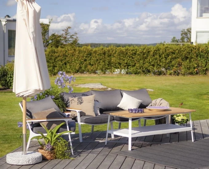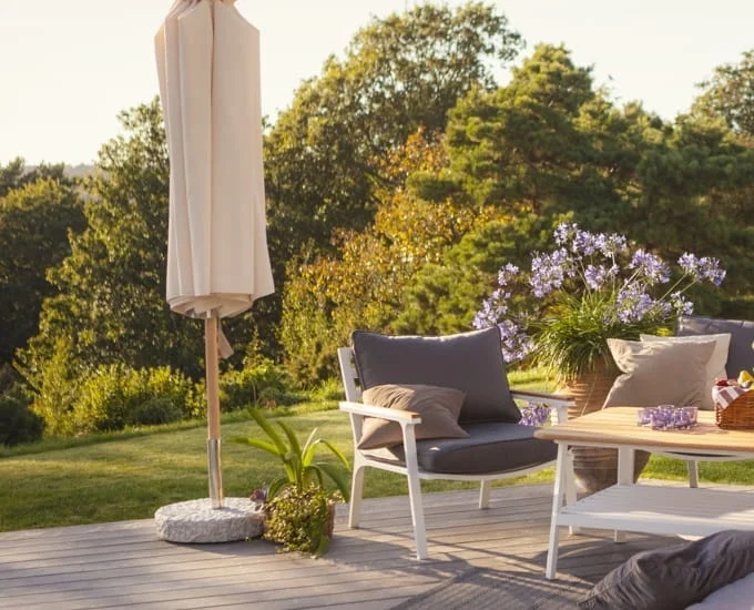 Podstawa pomieści parasole o średnicy trzonków od 38 do 52 mm. Naturalny wygląd podstawy sprawia, że dopasuje się ją do każdej aranżacji.