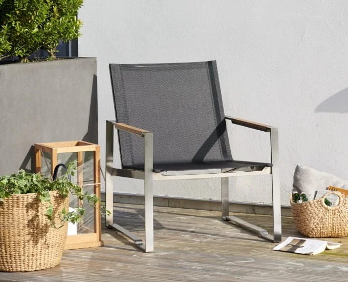 Stalowy fotel na płozach Gotland, to pełen elegancji mebel wypoczynkowy. Posiada nowoczesny design, który z łatwością wkomponuje się w wiele aranżacji ogrodów oraz tarasów. Z powodzeniem znajdzie również swoje zastosowanie w komercyjnych przestrzeniach hotelowych oraz restauracyjnych.