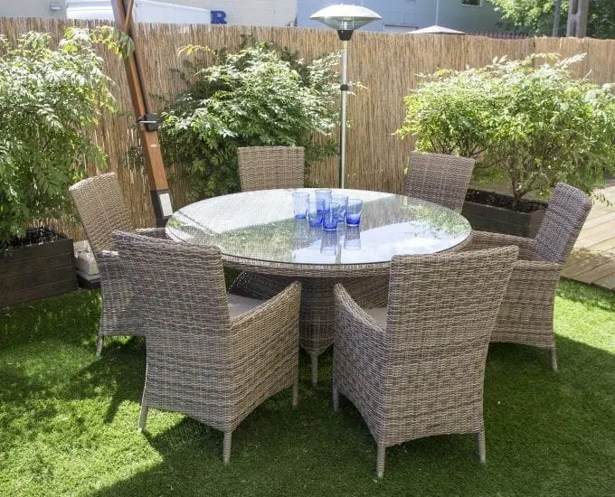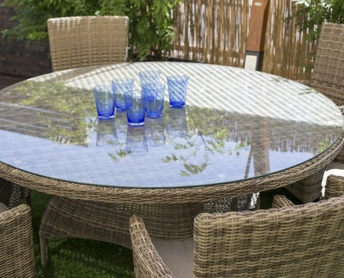Technorattan jest bardzo trwały, dlatego stół jest inwestycją na lata. Dodatkowo blat przykryty szklaną taflą, jest łatwy w pielęgnacji.