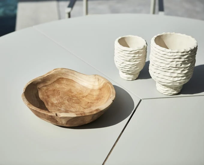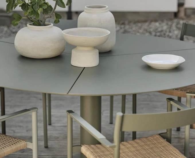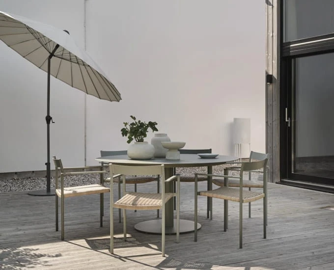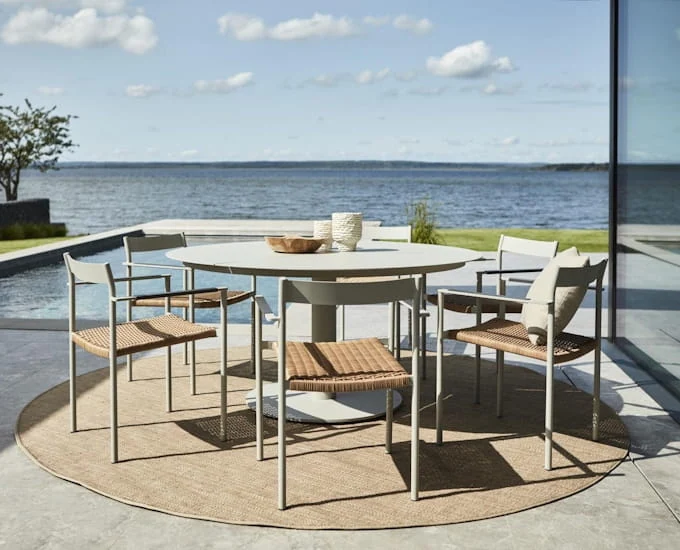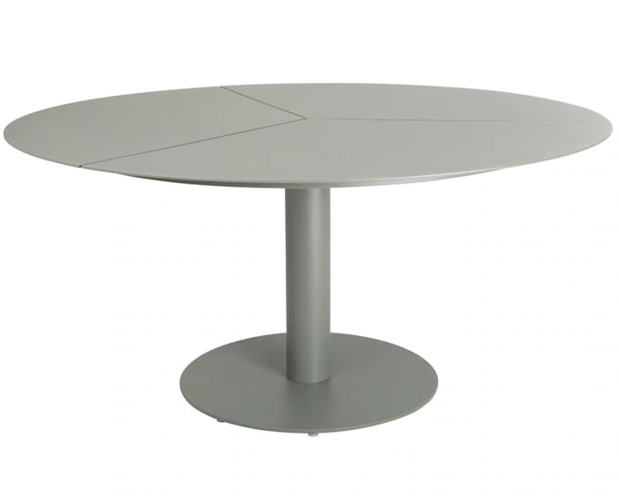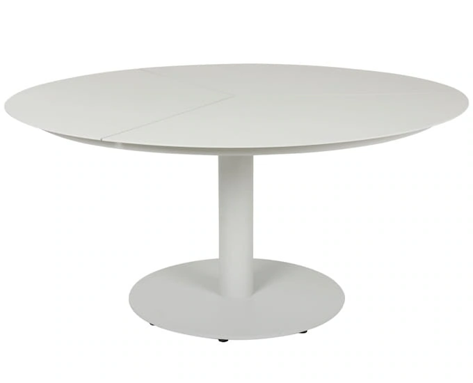 Solidny stół aluminiowy Peace z okrągłym blatem to nie tylko praktyczny mebel, ale również dekoracyjny, nowoczesny element wyposażenia tarasu. Do stołu można dopasować krzesła z aluminium, jak również innych materiałów. Krzesła można wsunąć lekko pod blat stołu, dzięki czemu całość nie zajmie wiele miejsca.