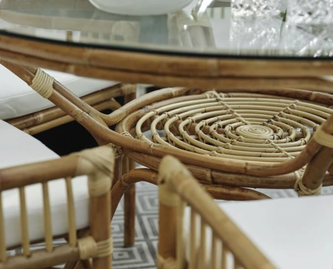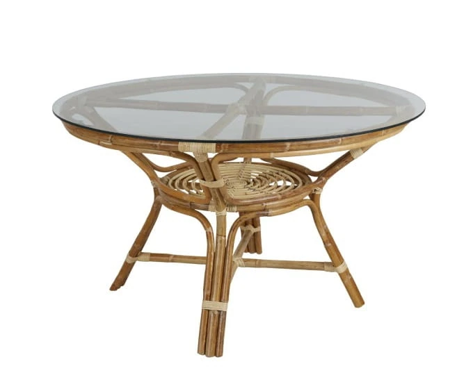 Stół z rattanu Vallda z okrągłym, szklanym blatem, świetnie sprawdzi się podczas spożywania posiłków oraz pracy zdalnej. Idealnie odnajdzie się w miejscach urządzonych w stylu boho, eko lub rustykalnym, choć nie tylko. W połączeniu z krzesłami stworzy kompletny zestaw ogrodowy.
