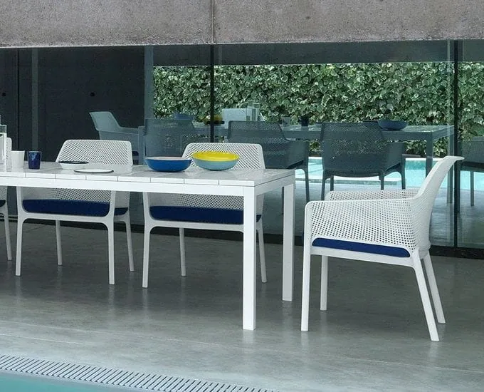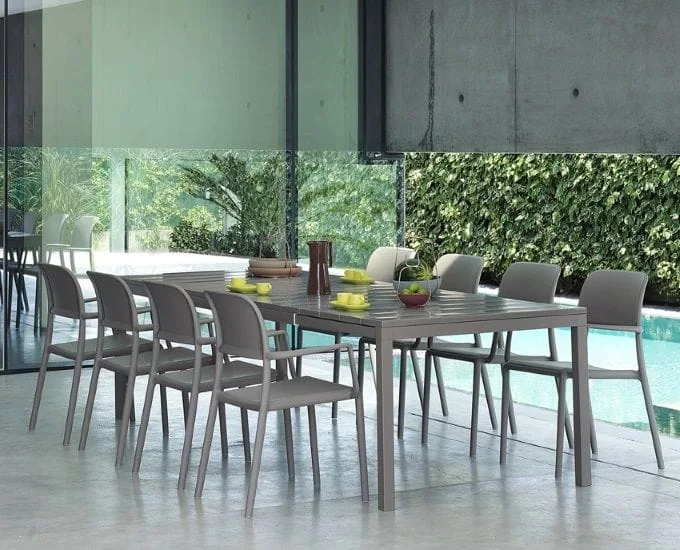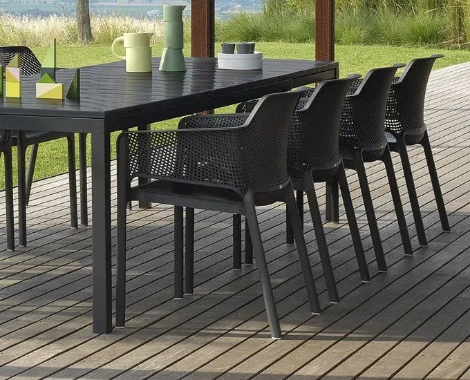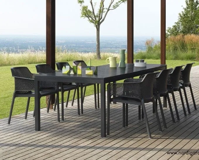 Prostokątny stół z długim blatem Nardi RIO to dokonała propozycja na duży taras lub do restauracji. Blat o długości 210 cm, rozciąga się do długości 280 cm. Kształt połączono tu z maksymalną funkcjonalnością, dając możliwość zwiększenia wymiarów stołu poprzez rozkładanie. Gwarantuje to maksymalne wykorzystanie stołu podczas różnych spotkań, niezależnie czy będzie to małe czy liczniejsze grono. Oryginalny, stylowy design, w połączeniu z trwałym tworzywem to gwarancja zadowolenia z pięknego wyglądu stołu, niezależnie od warunków, w jakich będzie użytkowany. Łatwa pielęgnacja i wygoda jaką zapewnia to kolejne atuty, dla jakich warto go mieć.