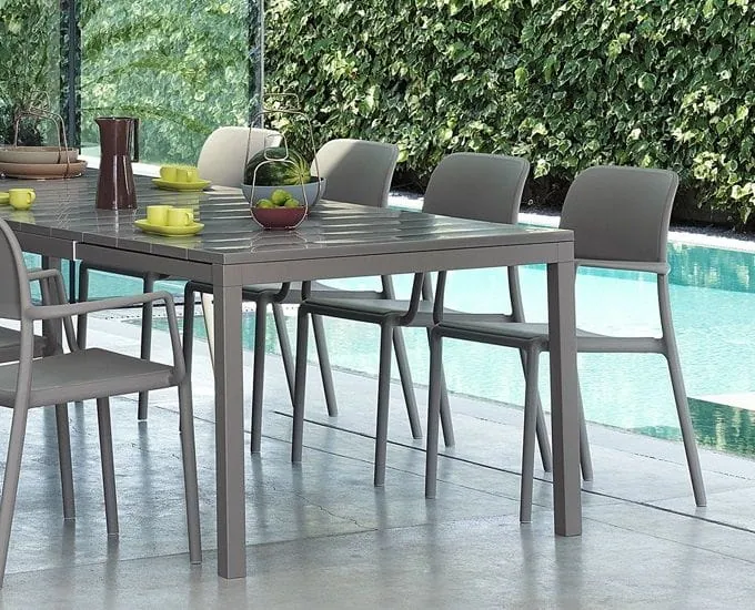 Aluminium malowane proszkowo i durel to idealne tworzywa do warunków ogrodowych. Wysoka odporność na czynniki atmosferyczne, w tym głównie na szkodliwe działanie wilgoci, oraz niskich temperatur gwarantują, że stół Nardi przez wiele lat będzie wyglądał idealnie. Stół może być pozostawiony na zewnątrz bez konieczności osłaniania go nawet podczas całego sezonu użytkowania. Pomimo tak intensywnej eksploatacji czynniki zewnętrzne nie wpłyną na pogorszenie jego właściwości. Nawet najsilniejsze promieniowanie słoneczne nie jest w stanie osłabić kolorystyki stołu, zarówno blat jak też rama stołu zawsze będą miały piękną, intensywna barwę. Blat jest stworzony z tworzywa, które poza odpornością na czynnik atmosferyczne, charakteryzuje się także odpornością na wysokie temperatury, aby maksymalnie uprzyjemnić korzystanie z tego produktu.