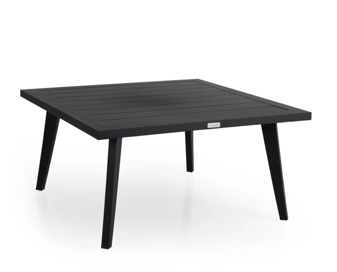 Stolik kawowy Villac został wykonany z aluminium malowanego proszkowo na kolor czarny lub biały. Blat stolika imituje deski. Lekko pochylone nóżki, są zgrabne i stabilne, a cała konstrukcja bardzo wytrzymała. Mały, ale funkcjonalny blat w kształcie prostokąta, idealnie pasuje do wielu tarasów.