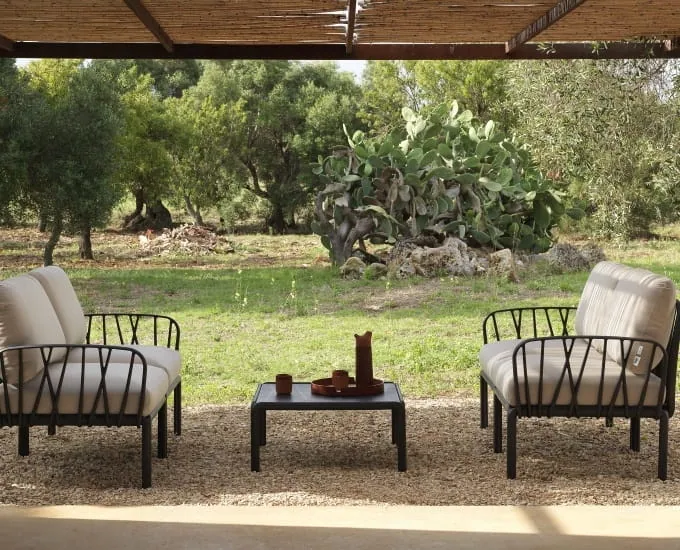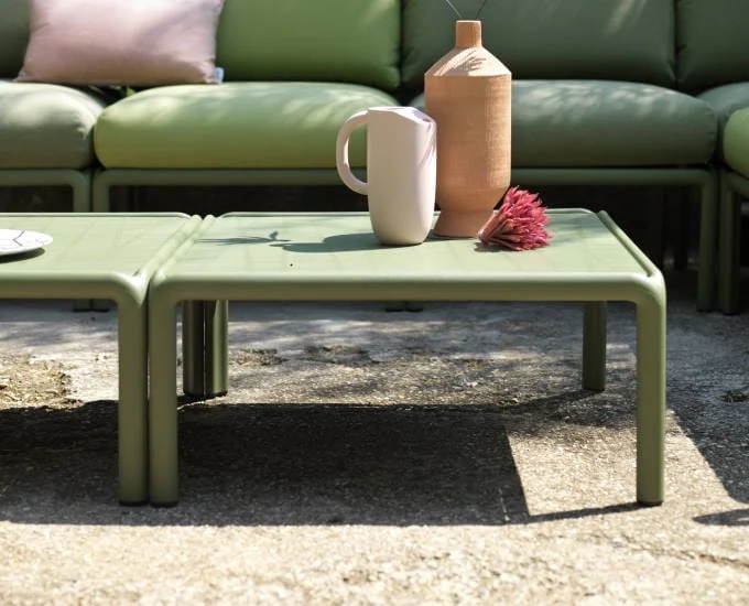 Praktyczny i funkcjonalny stolik kawowy Komodo jest częścią nowoczesnej serii ogrodowej włoskiej firmy Nardi. Stolik ma kwadratowy blat, wsparty na czterech nogach. Powierzchnia stolika ma fakturę przypominającą splot gałęzi, podobnie jak cała kolekcja mebli Komodo. Stolik jest stabilny i wytrzymały, odporny na warunki atmosferyczne i nie wymaga konserwacji.
