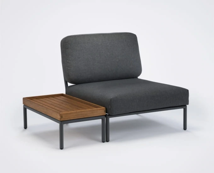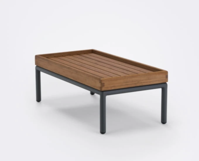 Stolik pomocniczy Level to nowoczesna propozycja do wymagających ogrodów. Stoliczek jest niski, zgrabny i bardzo atrakcyjny. Blat wykonano z twardego drewna egzotycznego - bambusa. Podstawa to metal malowany na czarno. Stolik może być ustawiony między kanapami jako dodatkowy blat boczny do odstawienia przekąsek i napojów.