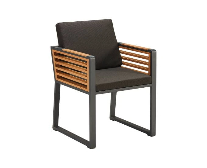 Krzesła ze stylowego zestawu mebli jadalnianych New York podtrzymują się na aluminiowych płozach. Ich ukoronowaniem są wygodne, ergonomiczne siedziska. Wyścielają je poduszki z nowoczesnej tkaniny Sunbrella, która doskonale znosi niekorzystne warunki pogodowe. Jest wodoodporna, szybko wysycha oraz jest łatwa w utrzymaniu w czystości. Ponadto jest przyjazna alergikom, gdyż zapobiega rozwojowi grzybów.