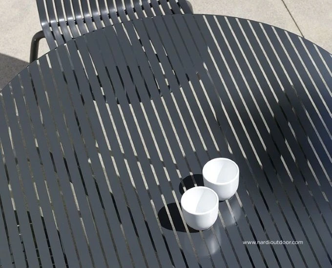 Konstrukcja stołu, na której wspiera się blat, została wykonana z aluminium malowanego proszkowo. Dzięki takiemu malowaniu, aluminium nie ulega korozji, nie wymaga także dodatkowej pielęgnacji ani ochrony.