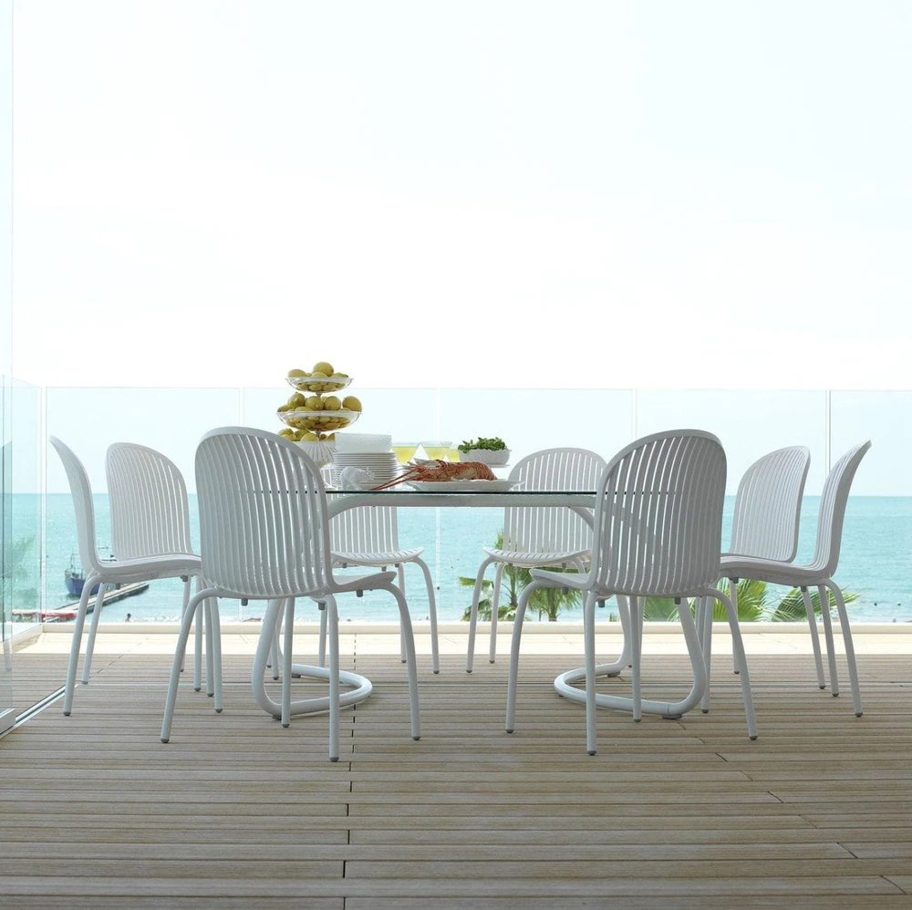 Szklany stół dla 8 osób Loto Dinner, to doskonała propozycja zarówno do przestrzeni wewnętrznych jak też do ogrodów. Szklany stół wyróżnia się unikatowym designem, trwałością i wygodą.