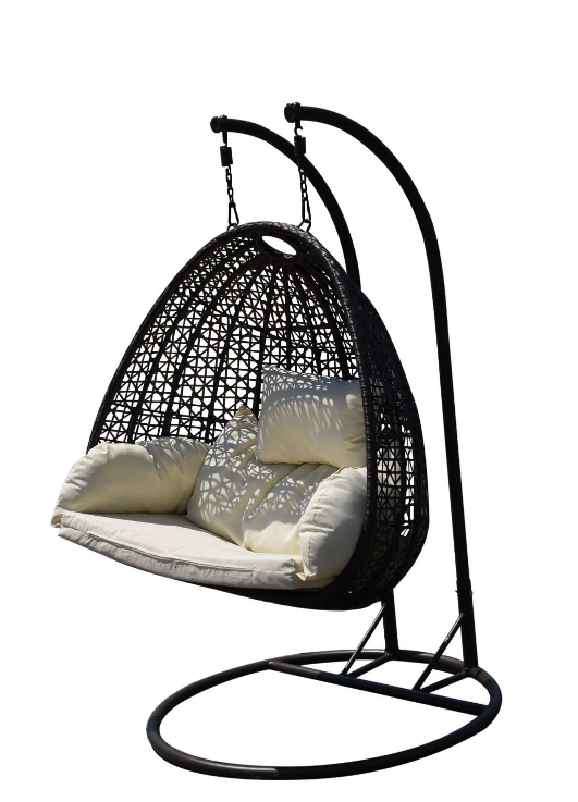 Wiszący fotel 2-osobowy Doppio z technorattanu, to nowoczesny mebel, który umożliwia komfortowe spędzanie czasu w towarzystwie drugiej osoby. Doskonale sprawdza się podczas przyjęć na świeżym powietrzu. Dzięki wykonaniu z materiałów wysokiej jakości, można z niego korzystać na zewnątrz, jak i wewnątrz. Posiada efektowny kosz, podwieszony na solidnej konstrukcji, przez co prezentuje się niezwykle efektownie i designersko.