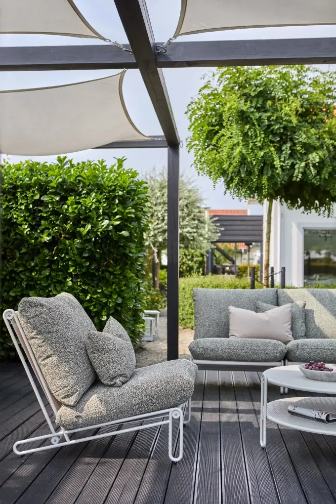 Sofa ogrodowa Blixt uzupełnia zewnętrzne strefy wypoczynkowe, tworząc miejsce spotkań w gronie przyjaciół i rodziny. Każdy gość z przyjemnością się na niej rozsiądzie i miło spędzi czas na świeżym powietrzu. Każde miejsce siedzące wypełnia osobna poduszka, co zdecydowanie poprawia komfort użytkowania.