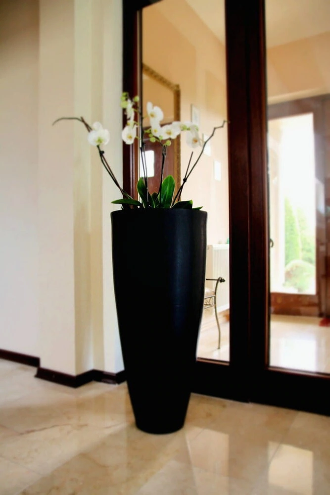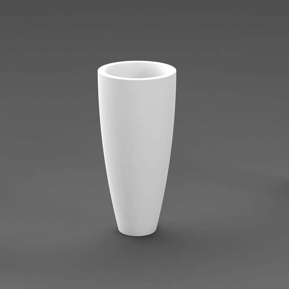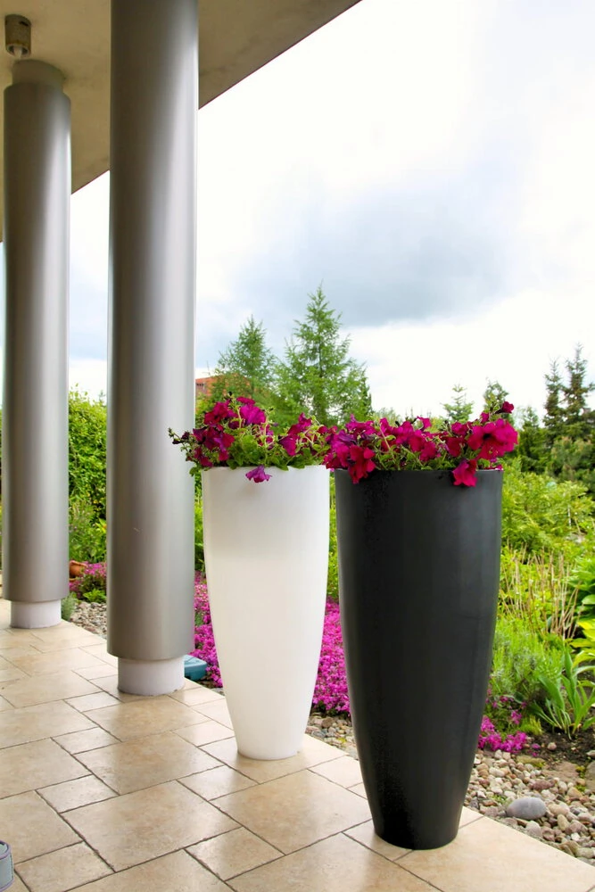 Wysoka donica Kalypso posiada smukły kształt, który doskonale wpasuje się nawet w małe, nieustawne przestrzenie. Jest wąska u dołu i poszerzająca się ku górze. Ten niezwykle efektowny kształt, doskonale eksponuje piękno roślin ozdobnych. Sprawdzi się zarówno przy małych, jak i bardziej rozłożystych okazach.