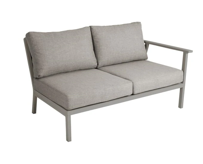 Aluminiowe moduły końcowe Samvaro to zestaw dwóch modułów 2-osobowych - prawy i lewy. Mogą służyć do stworzenia dużej sofy lub jako element narożnika ogrodowego. Moduły Samvaro są niezwykle wygodne, a to za sprawą wodoodpornych poduszek, które są zarazem praktyczne i komfortowe. Moduły są wykonane z aluminium, które jest odporne i wytrzymałe na zmienne warunki atmosferyczne. W komplecie poduchy, dopełniają komfortu siedzenia.