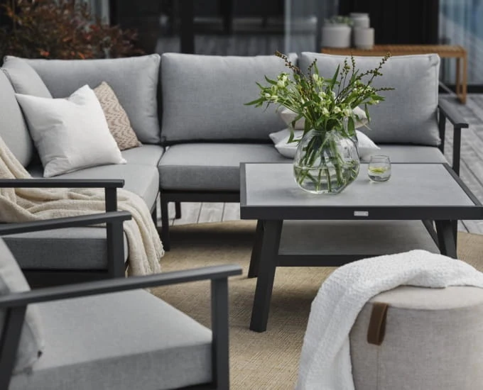 Kolekcja Samvaro zawiera także inne moduły: środkowe i narożne do stworzenia narożnika o dowolnych wymiarach i w dowolnej konfiguracji. Pozwala to na dużą elastyczność i wyposażenie tarasu stosownie do potrzeb. Do modułów można także wybrać odpowiedniej wielkości i kształtu stół.